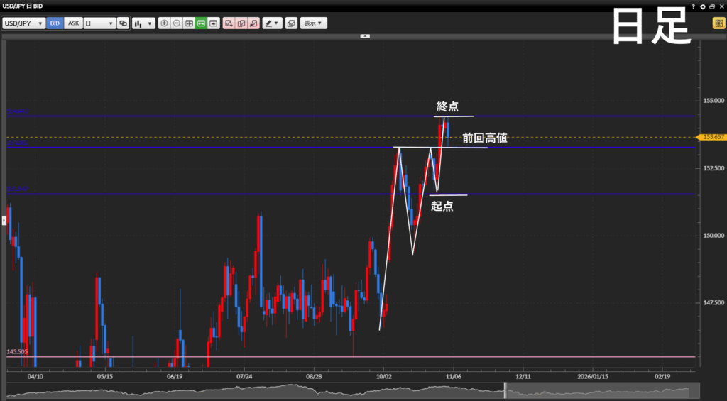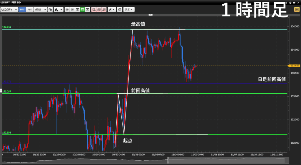 最高値の抜け後or起点での動きをみてトレードしたい!
