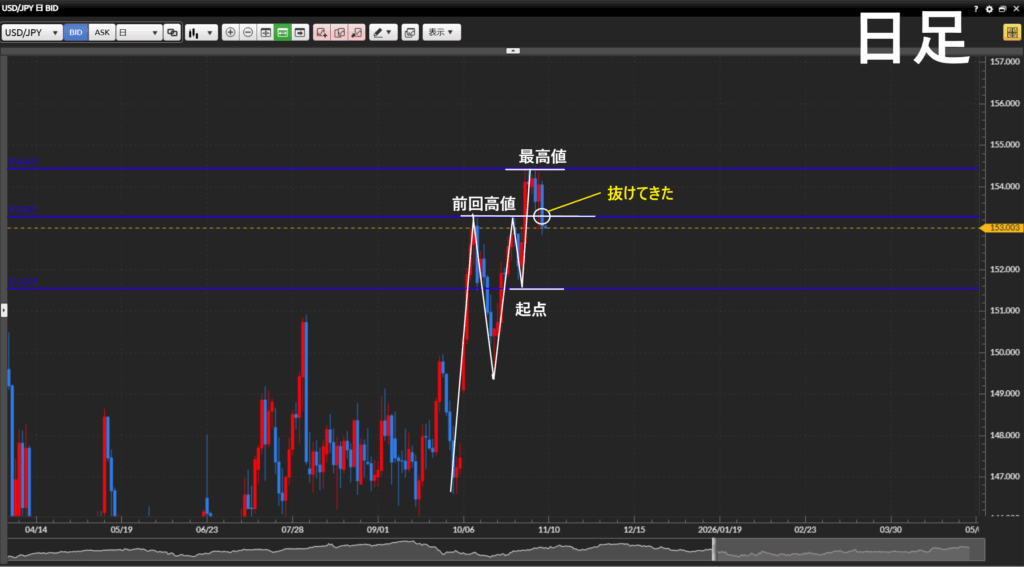 まだまだ上狙いなので、下の時間足を見ていきましょう!