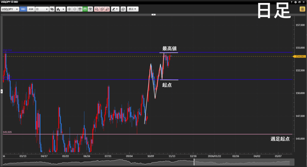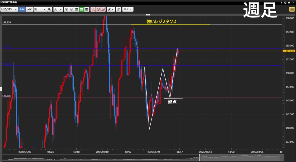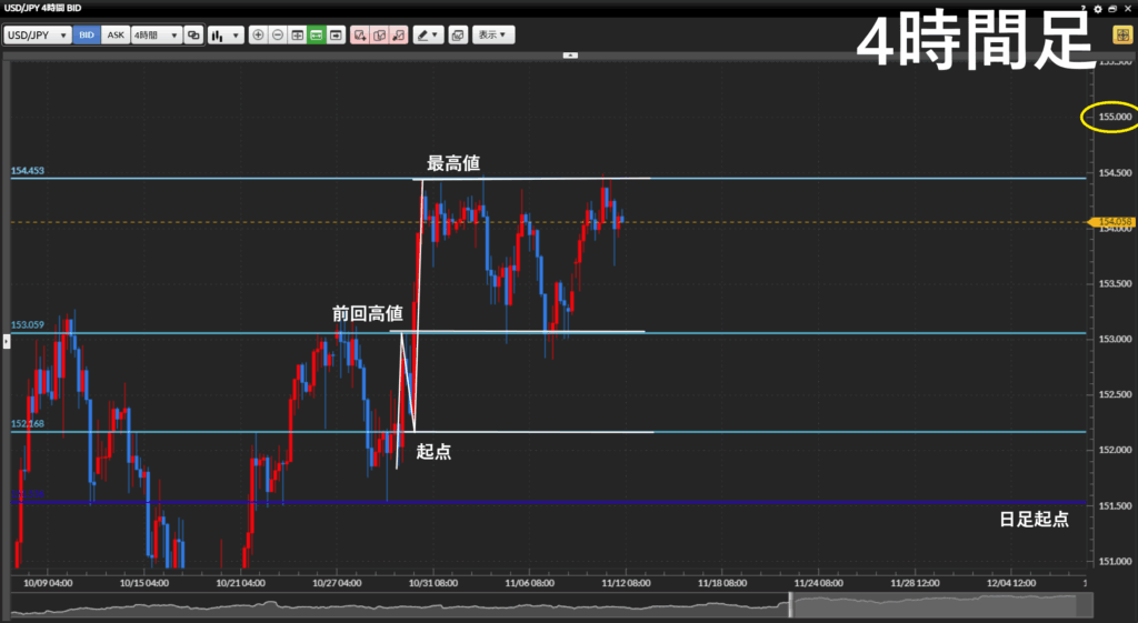 ・下位足で見ても、何度も跳ね返されているので最高値はかなり強いレジスタンスライン。