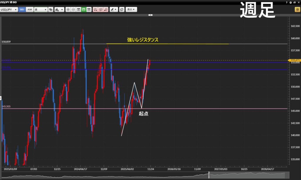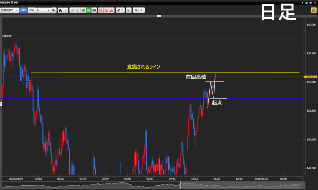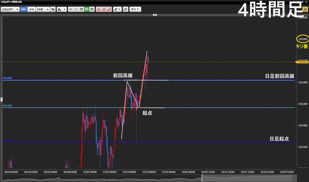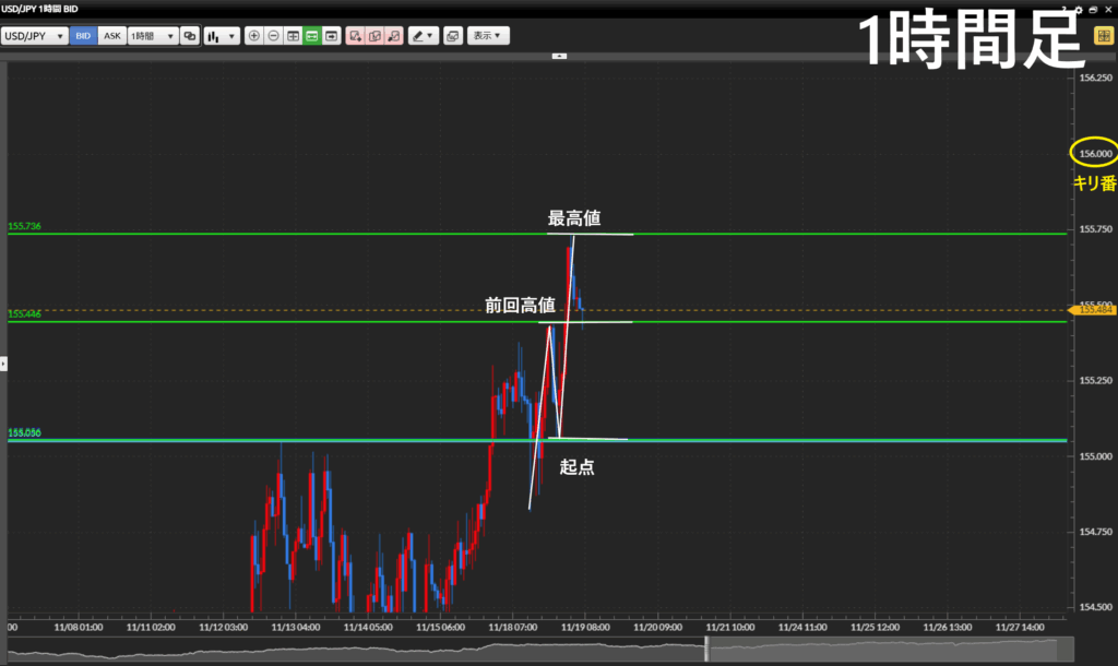 ・最高値を抜けた後は155円のキリ番で利益確定が堅実
