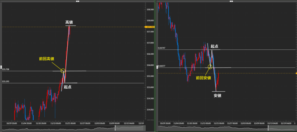 なので、多くのトレーダーは「前回高値」「前回安値」を起点の一つ前の判断基準として使うんです😉