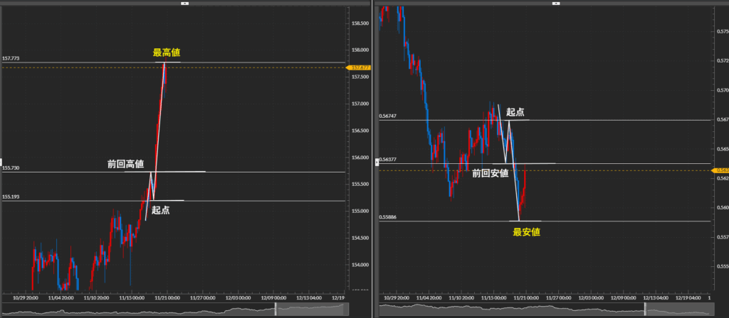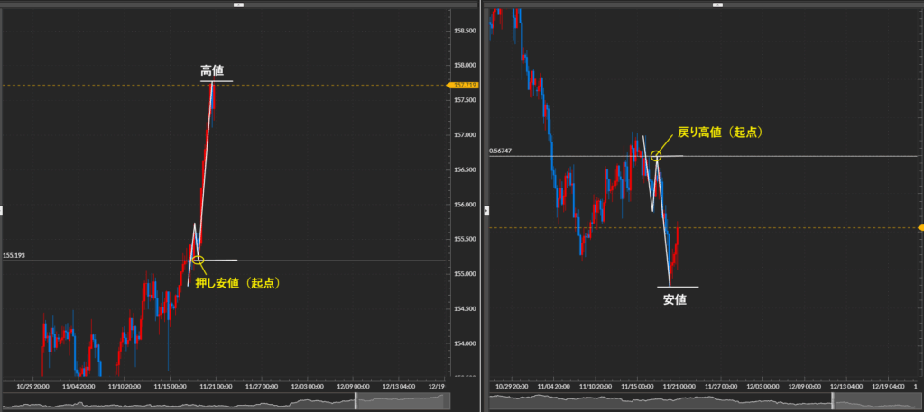 起点とは「高値」または「安値」を作る土台になった部分のことです!!