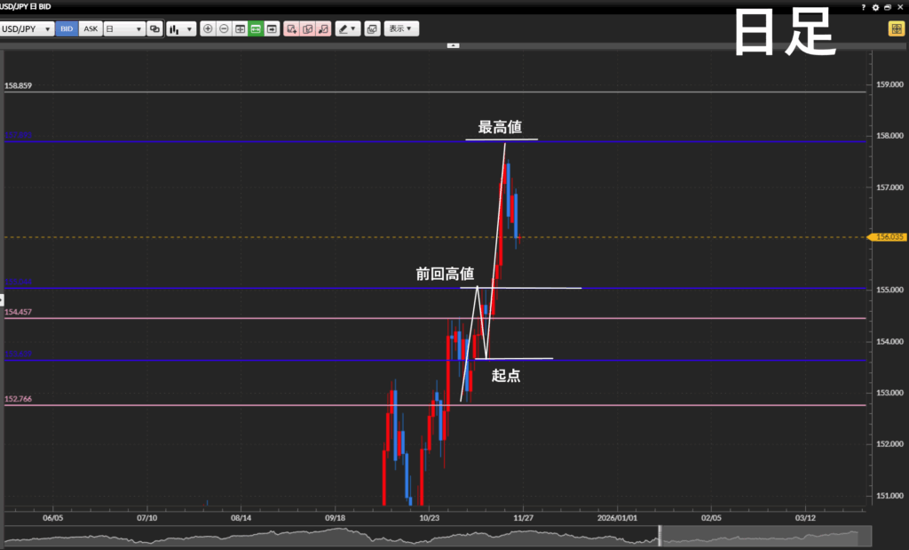 ・前回高値まで落ちてきているので、ここから「買い」を狙いたい相場