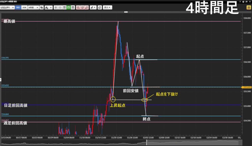 ・週足と日足は上目線の中で、4時間足と1時間足が下なので下狙いの戦略を立てていく。