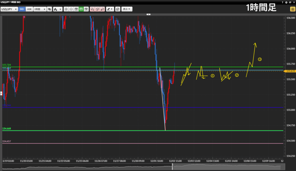 目線 週足↑ 日足↑ 4時間足↓ 1時間足↓