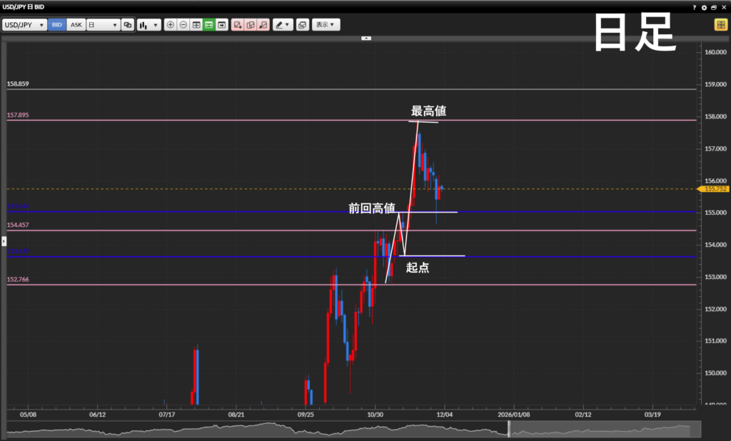・日足の調整波になっている状況。