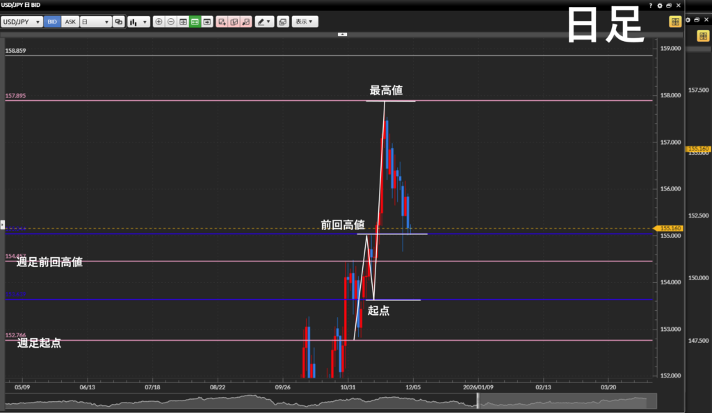 目線 週足↑ 日足↑ 4時間足↓ 1時間足↓