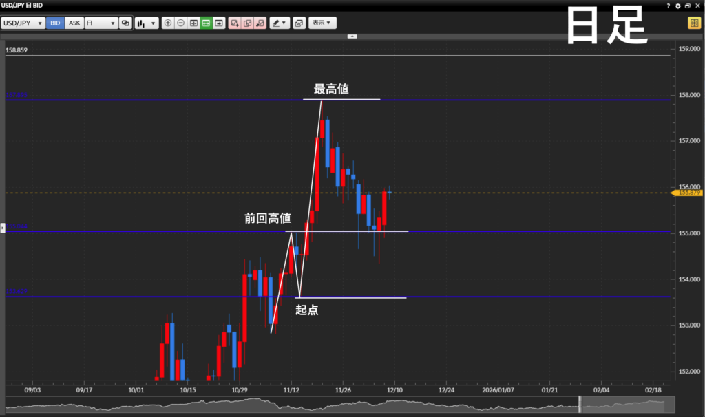 ・起点を下抜けたら4時間足も前回高値で狙っていく。