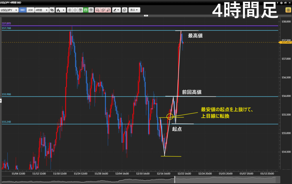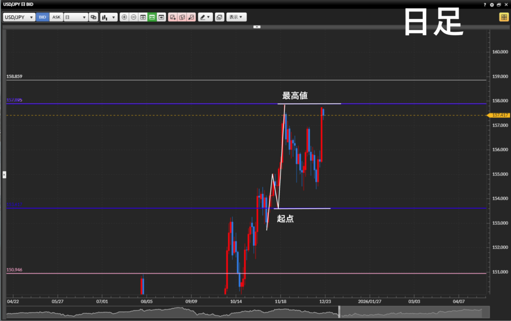 起点を抜けた瞬間をきっかけに売りを考えるトレーダーも一部いると考えましょう!